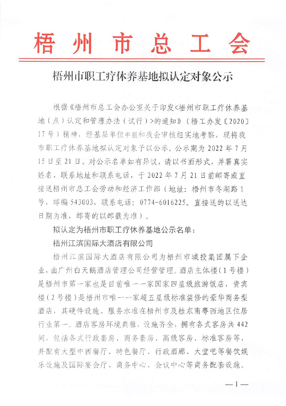 梧州市職工療休養(yǎng)基地?cái)M認(rèn)定對(duì)象公示