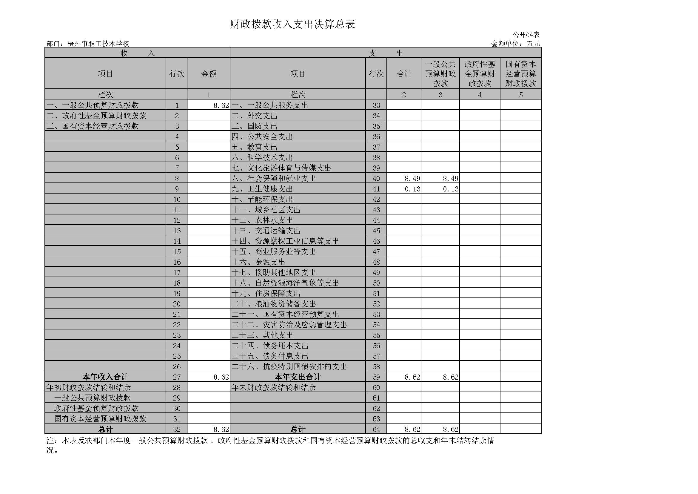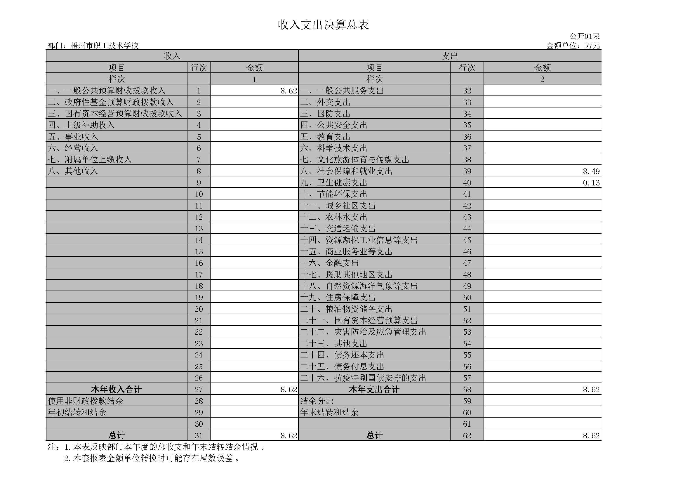 梧州市職工技術(shù)學(xué)校2021年單位決算