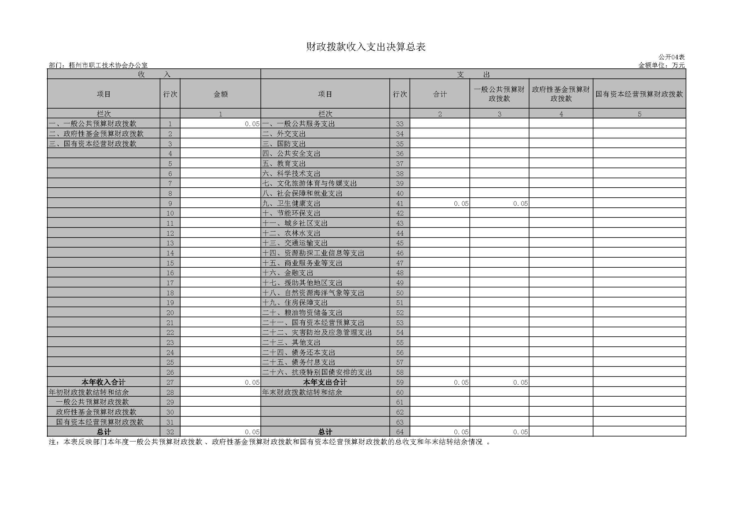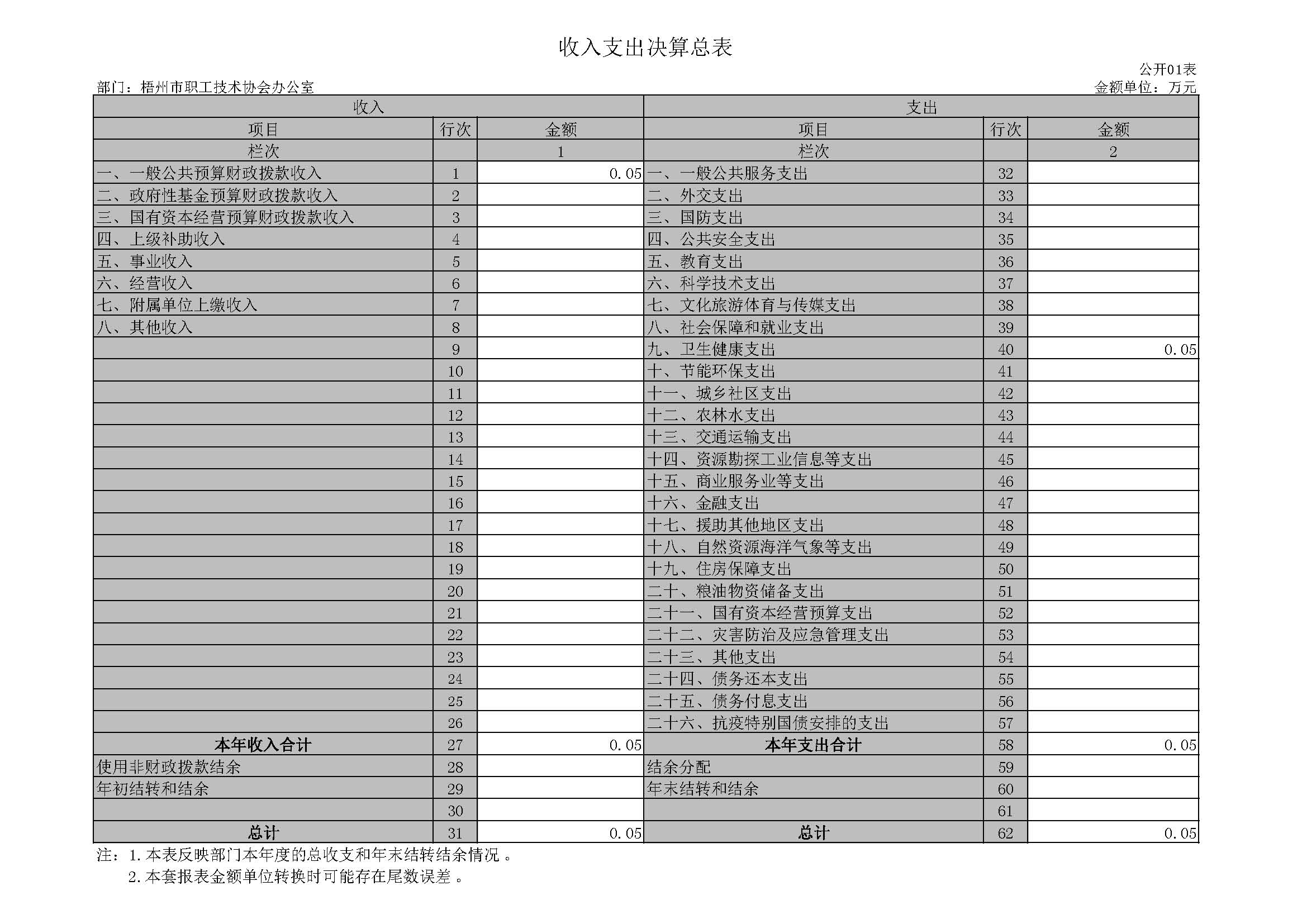 梧州市職工技術協(xié)會辦公室2021年單位決算