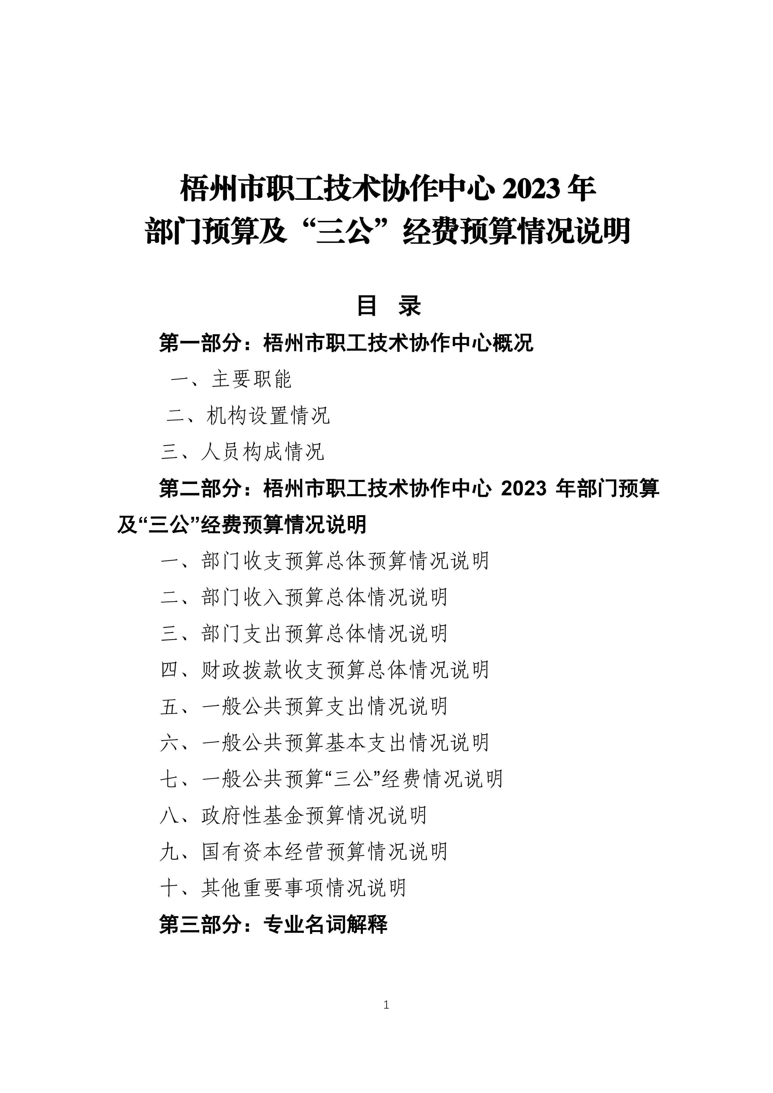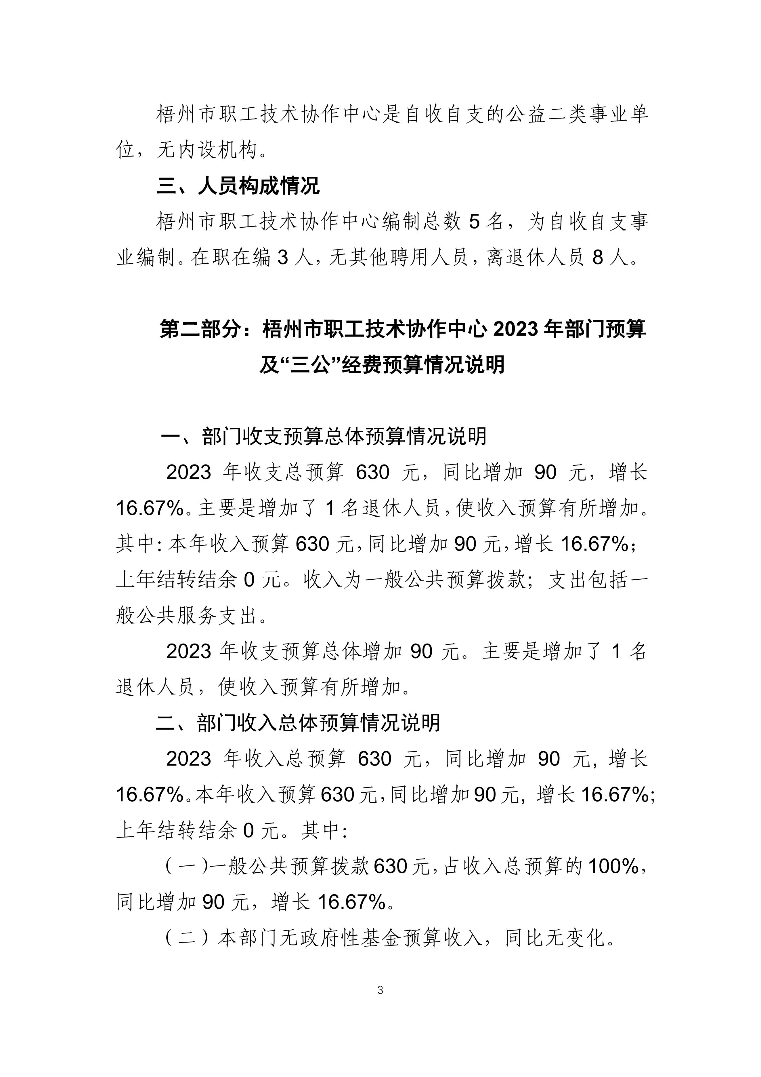 梧州市職工技術(shù)協(xié)作中心2023年度部門預(yù)算及”三公“經(jīng)費預(yù)算情況說明