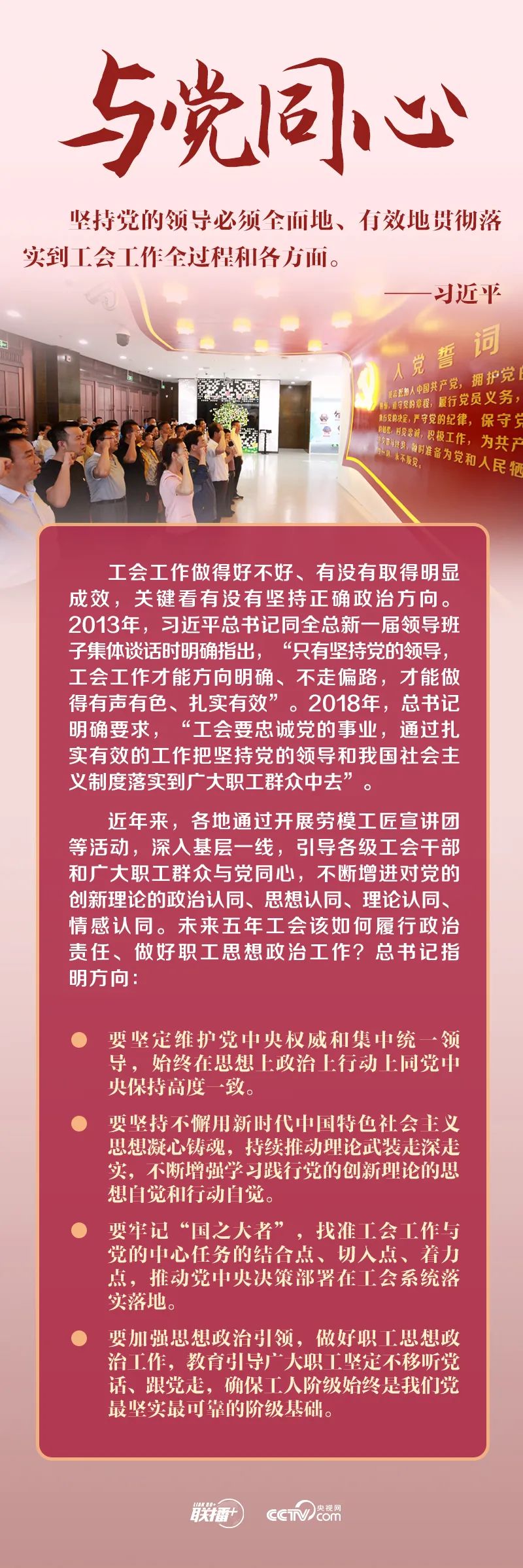 “堅持黨對工會的全面領導,任何時候、任何情況下都不能動搖、不能偏離。”